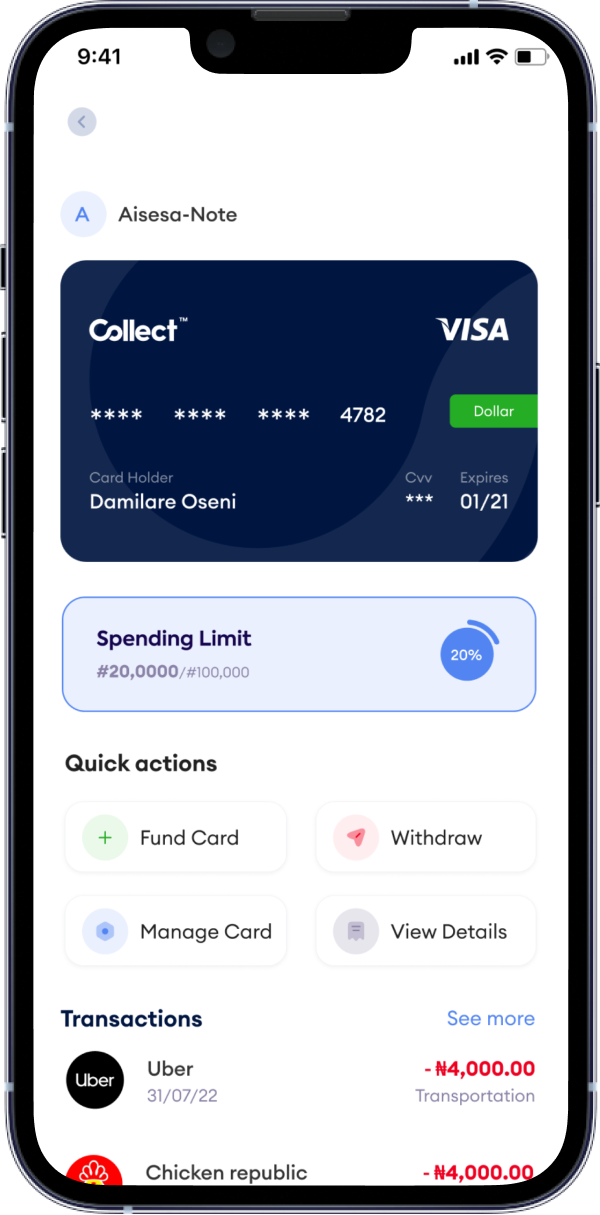 Set card limits, freeze cards, delete cards and view card expenses grouped under expense categories.
